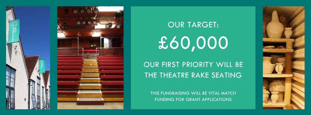 Following our recent successful capital project to improve accessibility and security of the centre, we are now launching an ambitious building improvement project, and we are asking for your help! The project will include (but may not be limited to) beginning much-needed upgrades to the theatre - in particular upgrading the raked theatre seating, replacing our antiquated kiln, and repairing parts of the roof in need of attention.