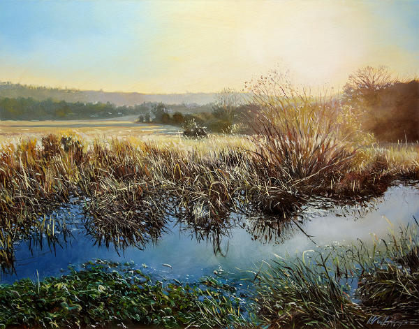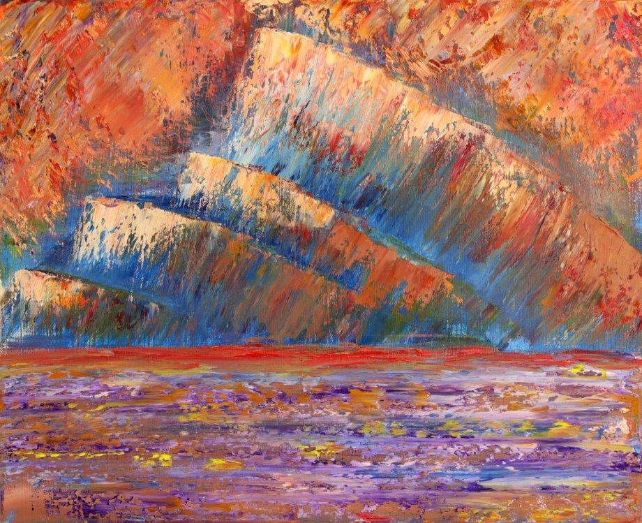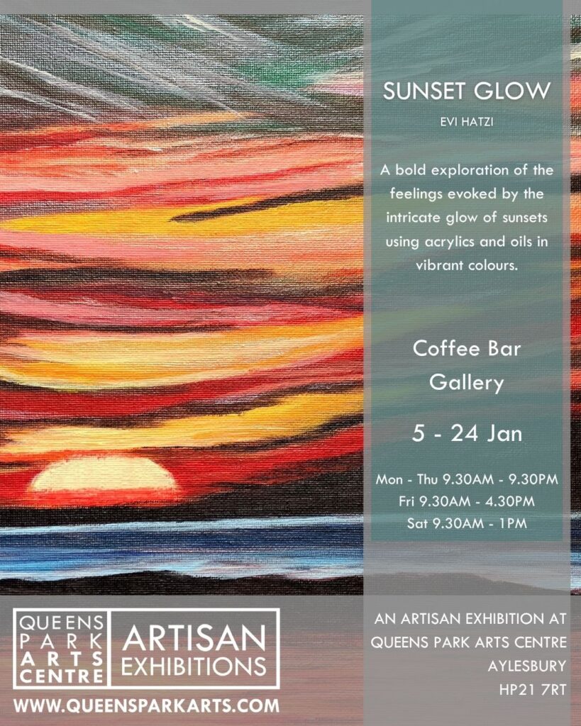 A bold exploration of the feelings evoked by the intricate glow of sunsets using acrylics and oils in vibrant colours.