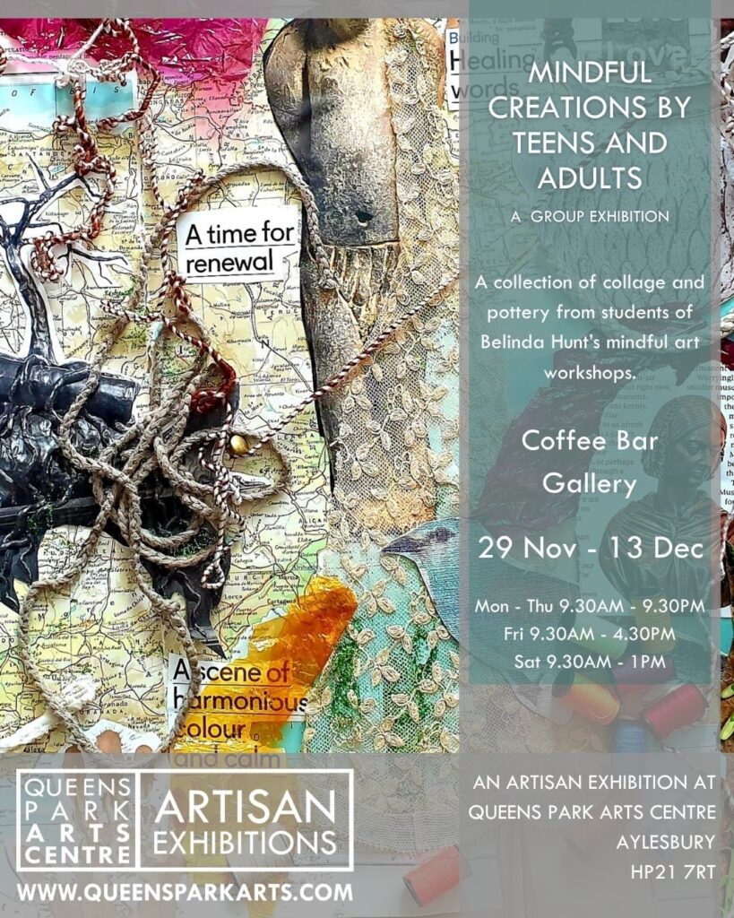 An Exhibition of work by Adults and Teens working mindfully in collage and paint media; and ceramics – reflecting on the changing seasons and our relationship with the world around us; facilitated by Belinda Hunt, Artist and Art Psychotherapist.